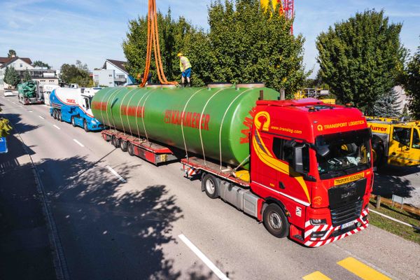 A new service station is under construction in Sirnach (TG). At the end of August, the construction work reached a new milestone with the installation of the fuel tank with 5 chambers, with a total volume of 110'000 litres. A video of this work can be viewed here.
