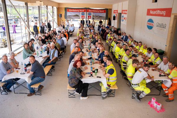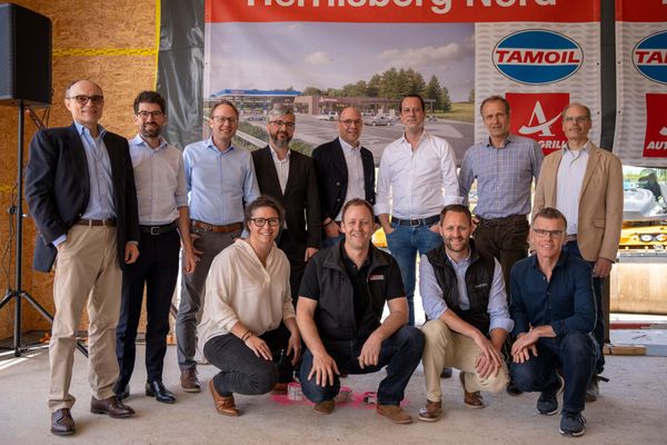 The time has finally come: our third TAMOIL highway service station is taking shape in Herrlisberg Nord (ZH) and a new milestone has been reached! On April 30, we celebrated the erection and roofing of the shell of the store and restaurant building with a topping-out ceremony.
